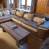 1 credenza bassa 3 porte 3 cassetti 1 tavolo in pino lunghezza 2,40 m con tovaglia in bulgum 8 sedie in pino con copertura 2 sedie pieghevoli con copertura