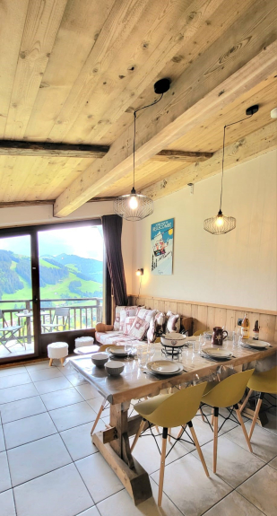 Un appartamento di 50m² per sei persone, ai piedi della pista di collegamento Lachat (blu), partenza e ritorno con gli sci possibile ai piedi della residenza. Un balcone bagnato dal sole in inverno e in estate e una vista eccezionale sulla valle e sul massiccio del Mont Rond. Vicinanza immediata ai negozi.