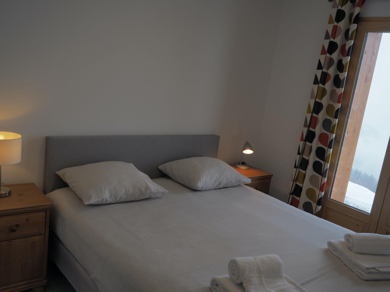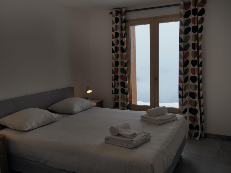 Lo chalet è stato rinnovato con gusto nel 2019 e la nuova camera da letto ha una vista sulla valle.