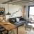 Al primo piano c'è una cucina aperta sul soggiorno. Il soggiorno ha un grande bovindo che si apre su un balcone con una grande plancha.
