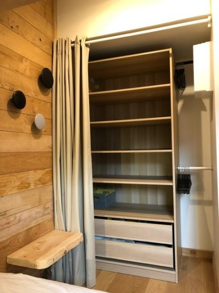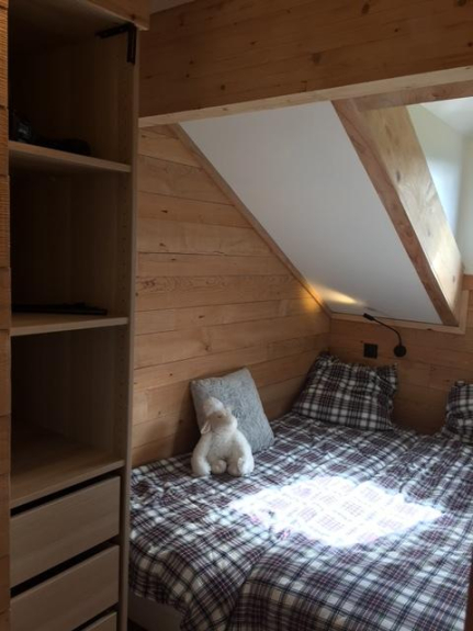 Al secondo piano, una camera da letto con un letto di 140 cm e molto spazio di archiviazione.