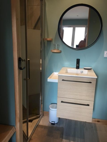 Al piano terra c'è una camera da letto con quattro letti da 90 cm e un bagno con WC, il suo scaldabagno, asciugacapelli e molto spazio di stoccaggio.