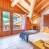 Livello 3: L'ampio soggiorno con divani e pouf, TV a grande schermo (con Blu-ray/DVD, Netflix gratuito) e stufa scandinava offre un'atmosfera accogliente. C'è anche un piccolo bar con frigorifero. Vi è un accesso al balcone e un WC separato. La sala da pranzo dispone di ampi tavoli per riunire comodamente tutti. La cucina professionale è completamente attrezzata, con due frigoriferi, un congelatore e scaldavivande. Sullo stesso piano si trovano due camere da letto con bagno privato e accesso al balcone, una con letto matrimoniale e una con 3 letti singoli.