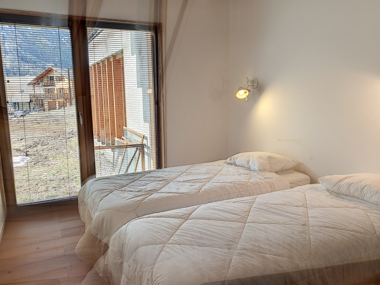 CHAL LE GYPAETE - Magnifico chalet d'architetto con un grande giardino di 1250 m², composto da 3 camere da letto, grande soggiorno con stufa a legna, cucina attrezzata, 2 bagni e 2 toilette.