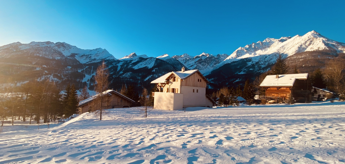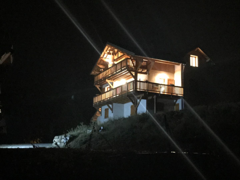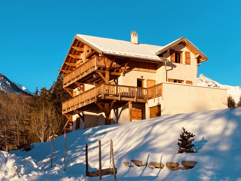 Bellissimo chalet di famiglia nu (2020) di 135m² + ripostiglio 25m². Chalet per 9 persone, nella parte alta del villaggio di Monêtier les bains. Grande terreno di 1100 m² direttamente sulla montagna, parcheggio privato e rimozione della neve per 4 auto. Campo da badminton, campo da bocce, tavolo da picnic. Molto luminoso con una vista mozzafiato sul ghiacciaio di Monêtier.