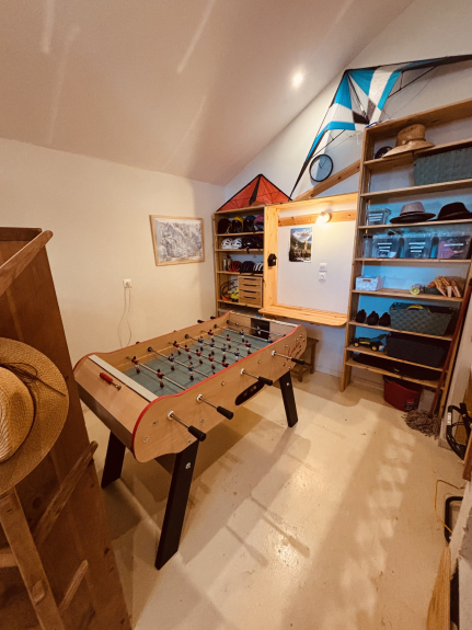 - Grande stanza per le attrezzature sportive: tavolo da ping pong, freccette, sci, bici, scarpe, giacche....