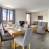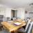Cucina aperta attrezzata con 4 piastre a induzione, frigorifero, forno, microonde, lavastoviglie.