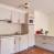 Cucina aperta attrezzata con 4 piastre a induzione, frigorifero, forno, microonde, lavastoviglie.