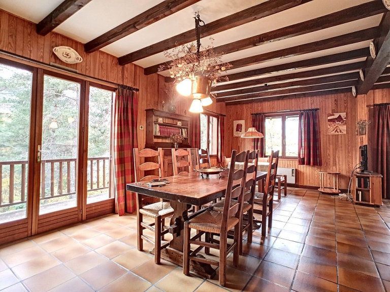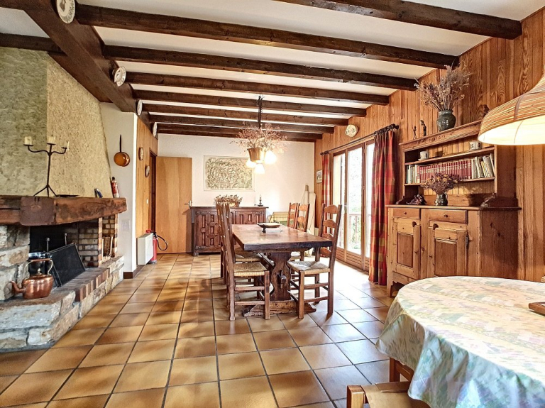 Grande soggiorno con camino, 5 camere da letto, 1 bagno con vasca, 1 bagno con doccia, 3 wc, garage.