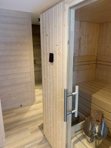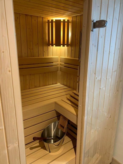 Livello -1: 1 camera dormitorio con 4 letti a castello, 1 sala relax con sauna e grande doccia, 1 WC