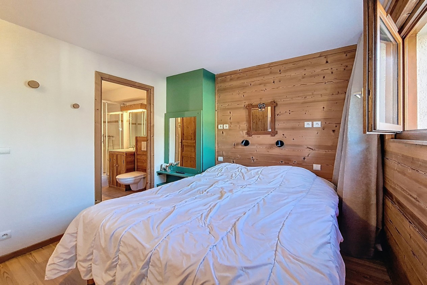 Camera da letto 1 en suite: 1 letto matrimoniale (140 cm) con una doccia e un WC. È dotato di una TV.