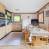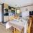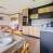 Cucina in muratura con 4 piastre, frigorifero, cappa, forno e lavastoviglie, tostapane, bollitore e macchina da caffè.