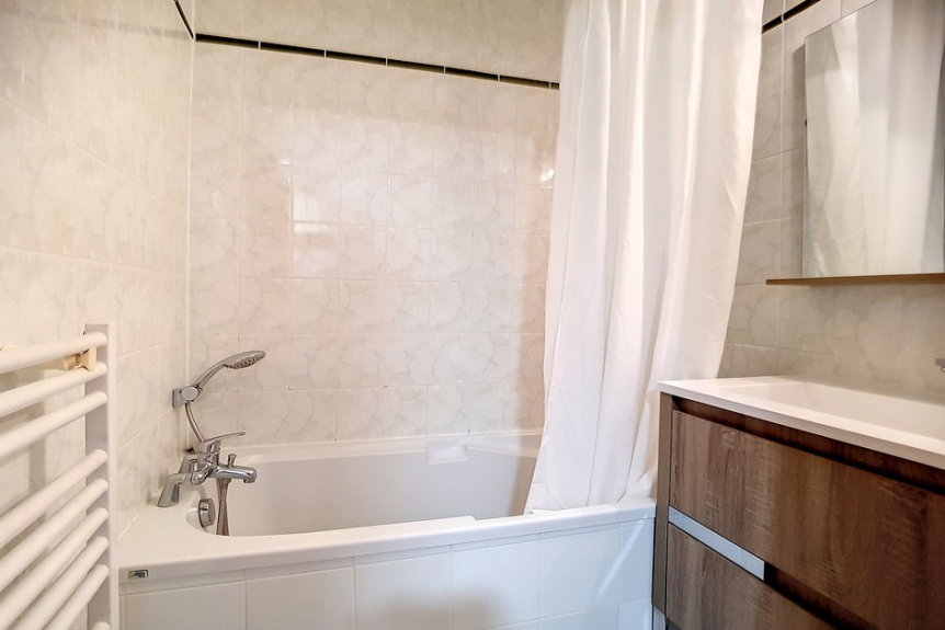 Bagno con vasca. Dotato di una lavatrice.