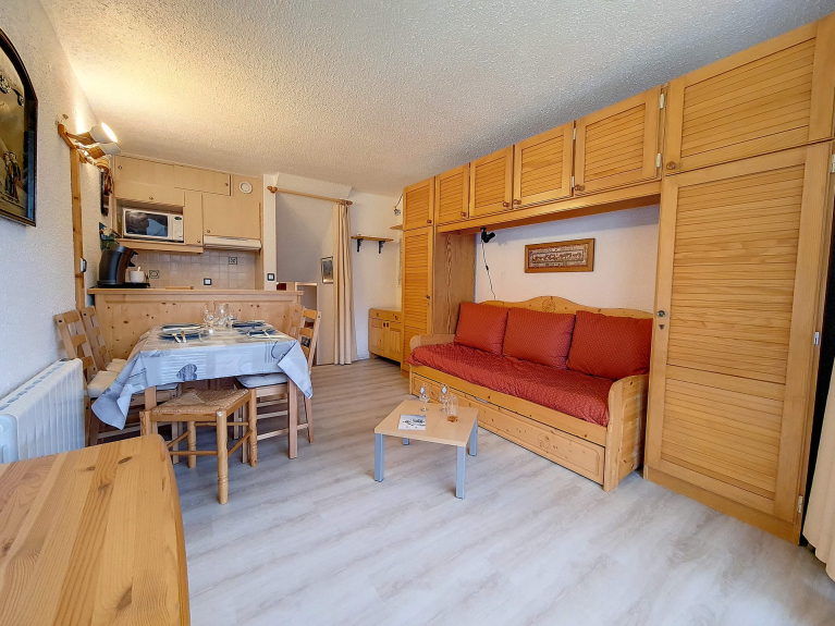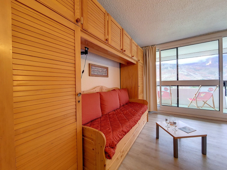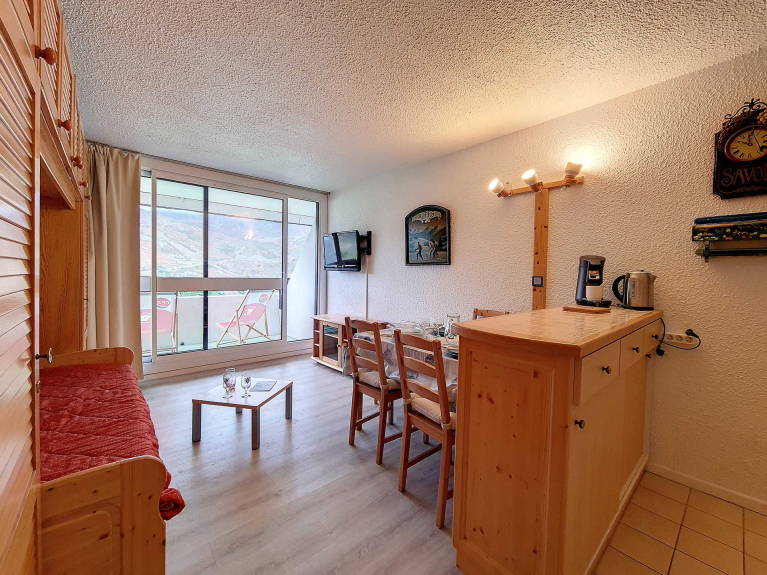 Uno studio duplex di 24 m² per 4 persone con un balcone esposto a sud/ovest situato al piano terra.