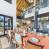 Ampio soggiorno e zona lounge con TV e camino, grande tavolo da pranzo.