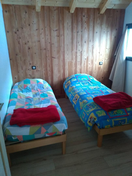 cucina aperta sul soggiorno, 1 WC, 1 bagno con doccia e 2 camere da letto (9m2) con 1 letto matrimoniale e 2 letti singoli
