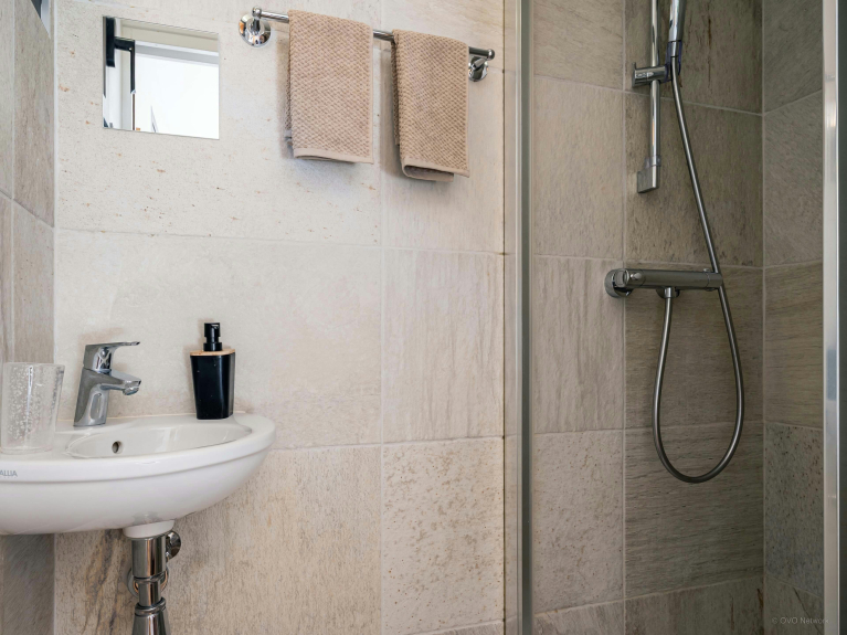 L'ingresso è al piano terra, dove c'è un corridoio abbastanza grande per riporre le vostre attrezzature all'aperto, una lavanderia per asciugare i vostri vestiti e stivali, un bagno con doccia e una camera matrimoniale con porte finestre che si aprono sul giardino soleggiato.
