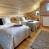 Il legno chiaro e i toni neutri sono elegantemente esaltati da plaid di pelliccia sintetica e accenti tessili colorati.