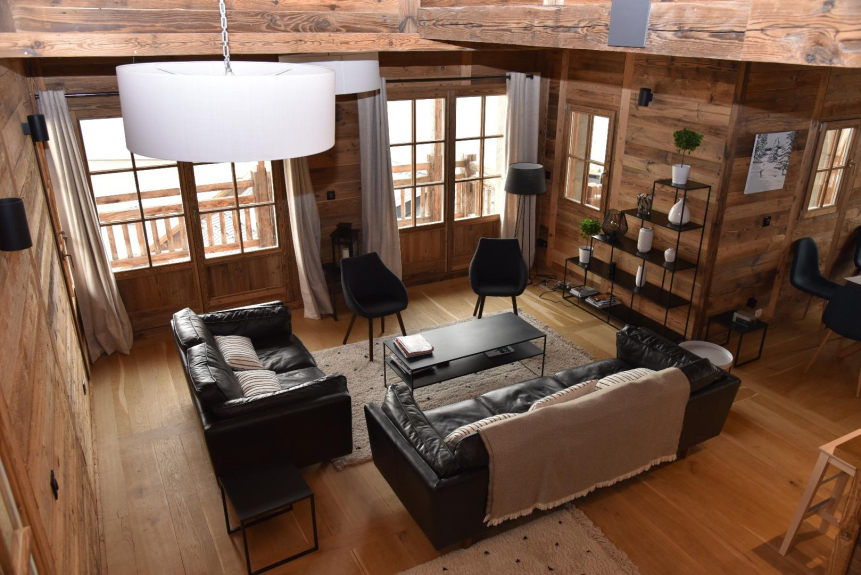 Lo chalet è organizzato intorno ad un grande salone di grande altezza sotto una superba cornice di legno. Questo piano centrale ha un angolo cottura e una sala da pranzo. È circondato da un balcone esposto a sud e a ovest che permette di godere di una vista incredibile, senza alcun opposto.