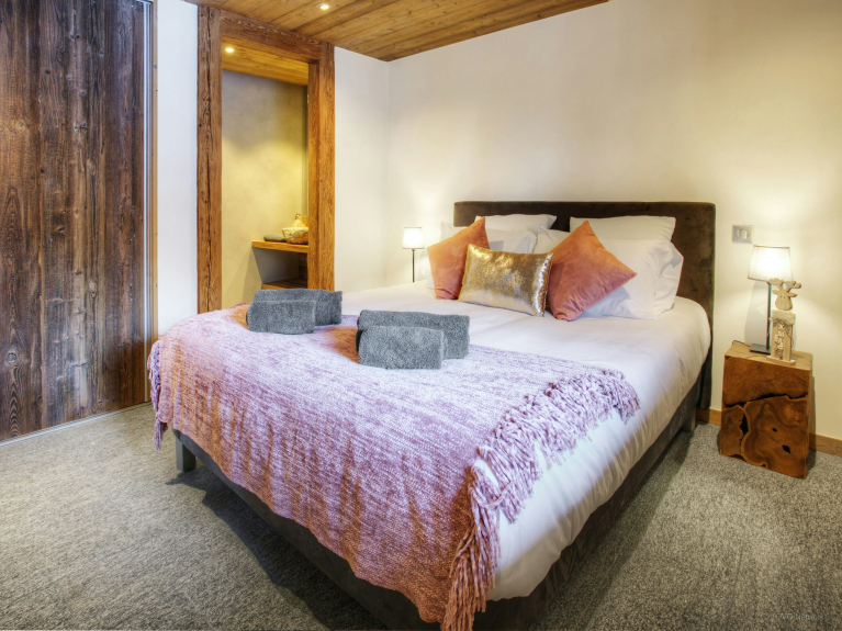 L'ultima camera da letto si trova al livello del giardino. L'ultima camera da letto si trova al livello del giardino ed è adatta a due persone e ha un bagno con doccia, TV e accesso diretto alla terrazza. Si può accedere al deposito sci direttamente dalla terrazza o dall'interno dello chalet.