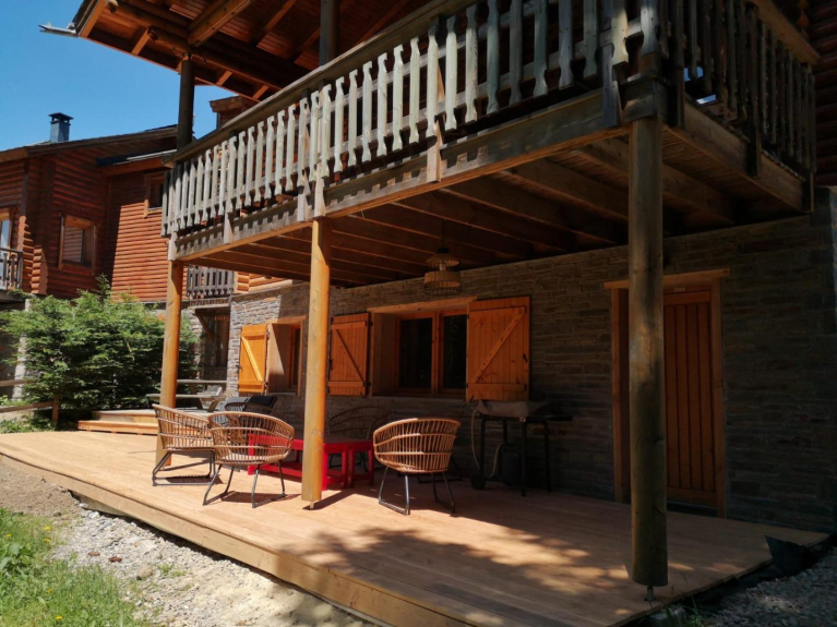 Questo chalet su 3 livelli è composto da 4 camere da letto (2 delle quali sono suite parentali), 2 soggiorni, 1 cucina attrezzata, 3 bagni con doccia, 2 WC, 1 grande terrazza coperta e 1 giardino non recintato.