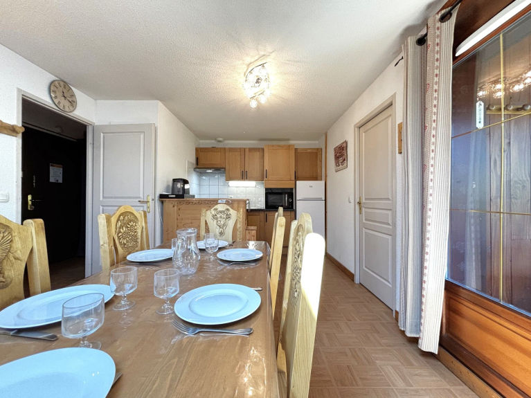 Appartamento ai piedi delle piste dell'Espace Diamant per sei persone al primo piano con una grande terrazza di 10 m² che offre una bella vista sulle montagne.