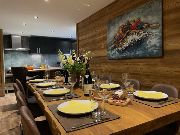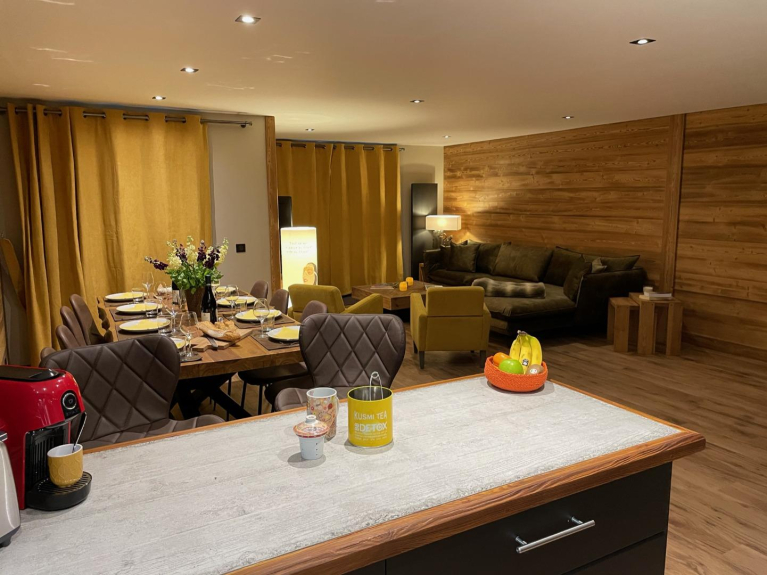 SPAZIOSO NU APPARTAMENTO TIPO CHALET 115M2 per 6 a 8 persone, situato in una residenza recente a bourg saint maurice a 500 metri dalla funicolare (via passerella) che collega bourg st maurice a ARC 1600 in 7 minuti; situato al piano terra, con terrazza e giardino 450 M2, garage privato chiuso nel seminterrato per biciclette e moto 4 posti auto privati (esterno), 3 camere dotate di TV (160X200), (90X190 X 2 letti), (140X200, e 1 letto a castello)