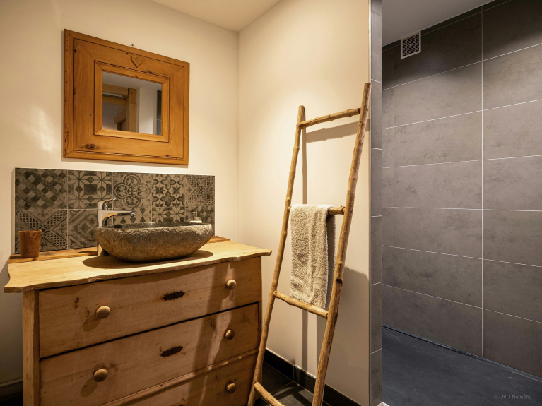 Gli alloggi dello Chalet Ibusta sono distribuiti su tre piani. Il garage è al livello del giardino, dotato di un asciuga scarponi e di un ampio spazio per lasciare le vostre biciclette o gli sci alla fine della vostra giornata in montagna. In seguito, potrete rilassarvi nella sauna o nella jacuzzi sulla terrazza. C'è anche una grande area di allenamento con cyclette, doccia e lavanderia.