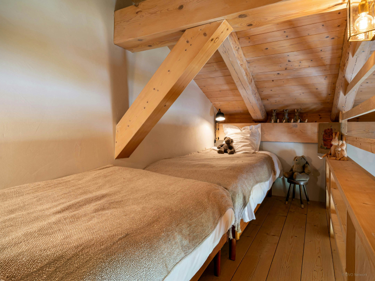 Lo chalet ha quattro camere da letto per dieci persone, una sauna, una sala giochi e una jacuzzi esterna. Tutto il necessario per una perfetta vacanza in montagna.