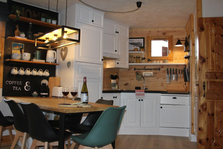 Bellissimo appartamento di 45m² per 6 persone al primo piano di una residenza di tre piani situata nel cuore del villaggio di Montchavin (comprensorio sciistico Paradiski La Plagne/Les Arcs). 2 balconi, il principale rivolto a sud.