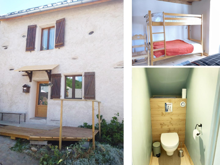 Il primo piano è composto da una camera da letto con 4 letti (1 letto a castello - quindi 2 singoli -, e un letto matrimoniale di 160 che può essere trasformato in 2 letti singoli) e un bagno indipendente con doccia e lavabo.