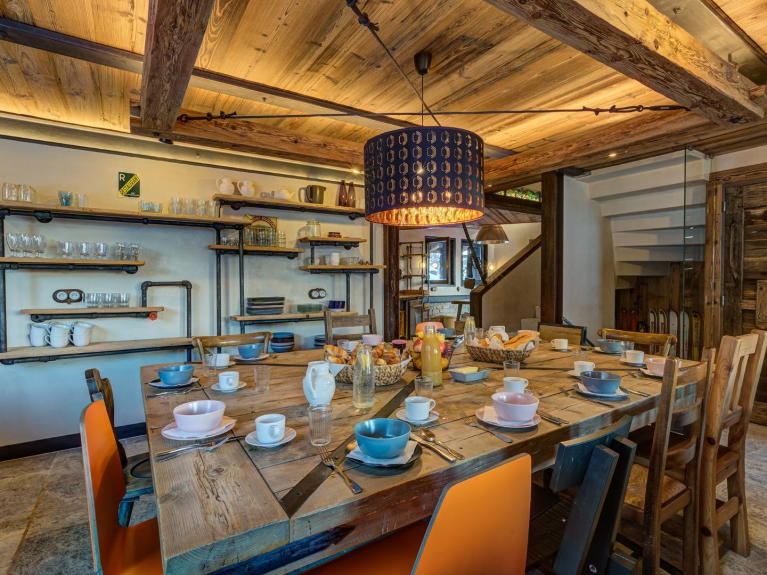 Al primo piano, un accogliente salone a pianta aperta vi invita a rilassarvi con la sua grande area salotto e il balcone con vista infinita sulla Valle di Bozel. Sentitevi a casa nella superba cucina e sala da pranzo dello chalet, le strutture della cucina sono eccellenti e il tavolo da pranzo in stile fienile recuperato può ospitare fino a 11 persone.