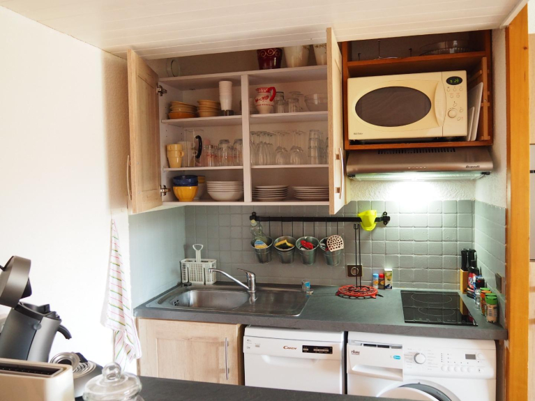 La stanza principale ha un sacco di spazio nell'armadio. Una cucina completamente attrezzata (lavastoviglie, forno, forno a microonde, lavatrice, macchina per il caffè filtro, macchina a cialde Senseo, raclette, piatto per fonduta, tostapane, bollitore ecc.)