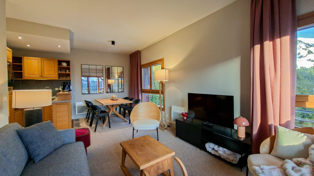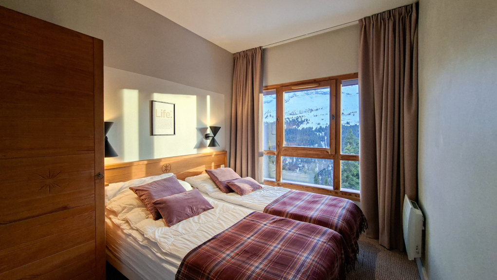 Residenza turistica a 5 stelle situata nel quartiere di Flaine Mont Soleil ai piedi delle piste e a circa 400 metri dai negozi. Posti auto coperti. Ascensori. Armadietti per gli sci.