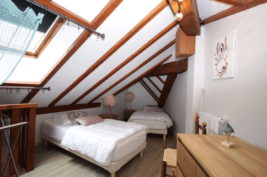 Mezzanino (est,7 m2+6m2 sotto 1.80m) : 2 letti singoli di 80.