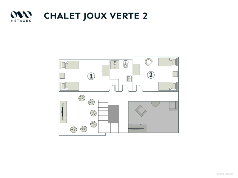 Allo Chalet Joux Verte, gli alloggi sono distribuiti su tre livelli. Entrando al piano terra, troverete due camere da letto doppie. Una ha un bagno con doccia e l'altra ha un bagno. Questo livello ha anche una pratica lavanderia con lavatrice e asciugatrice, una sauna con doccia e una toilette separata.