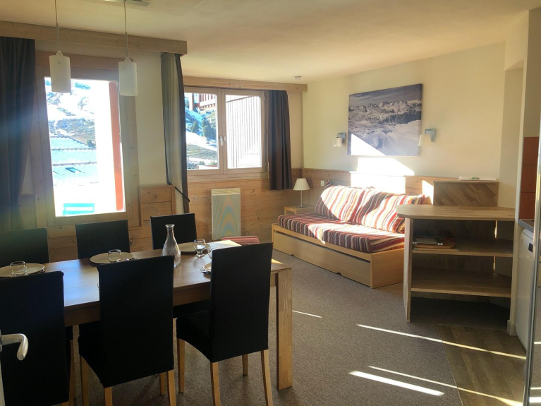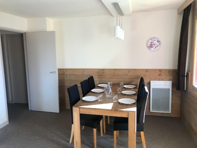 Appartamento per 7 persone in un residence situato ai piedi delle piste di Belle Plagne, una stazione pedonale nel cuore del Paradiski (uno dei più grandi comprensori sciistici del mondo).