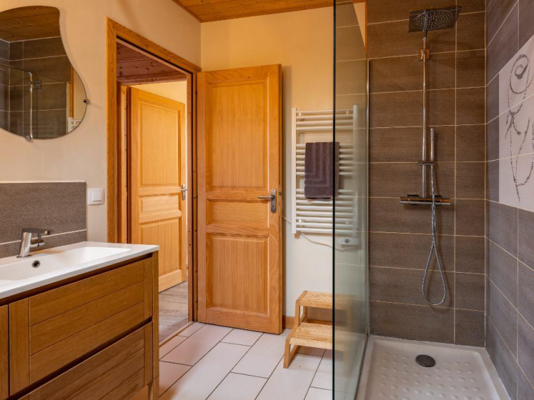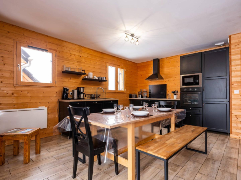 Composto da un grande ingresso per riporre le vostre attrezzature, un soggiorno di 40 m² con cucina attrezzata, 3 camere da letto, 2 wc e un bagno con doccia. Accompagnato da una zona benessere di 20m² con jacuzzi, sauna e hammam.