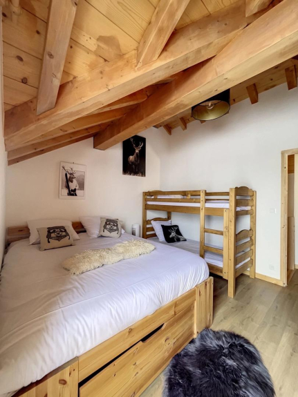 Vero chalet savoiardo con gli sci ai piedi, 92m² per 10 persone su 3 piani con vista sulle montagne circostanti