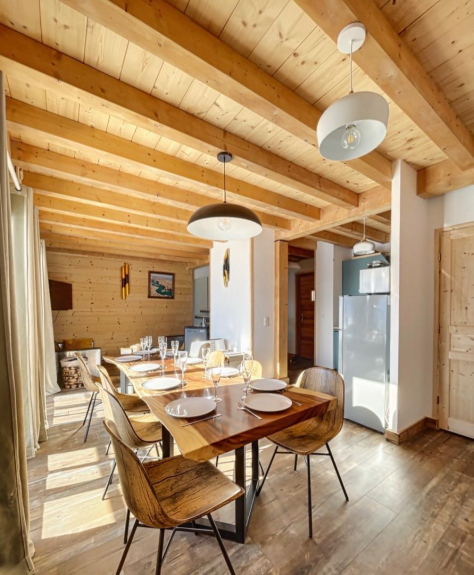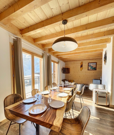 Chalet savoiardo su 3 livelli con vista mozzafiato sulle Aiguilles d'Arves e le montagne circostanti.