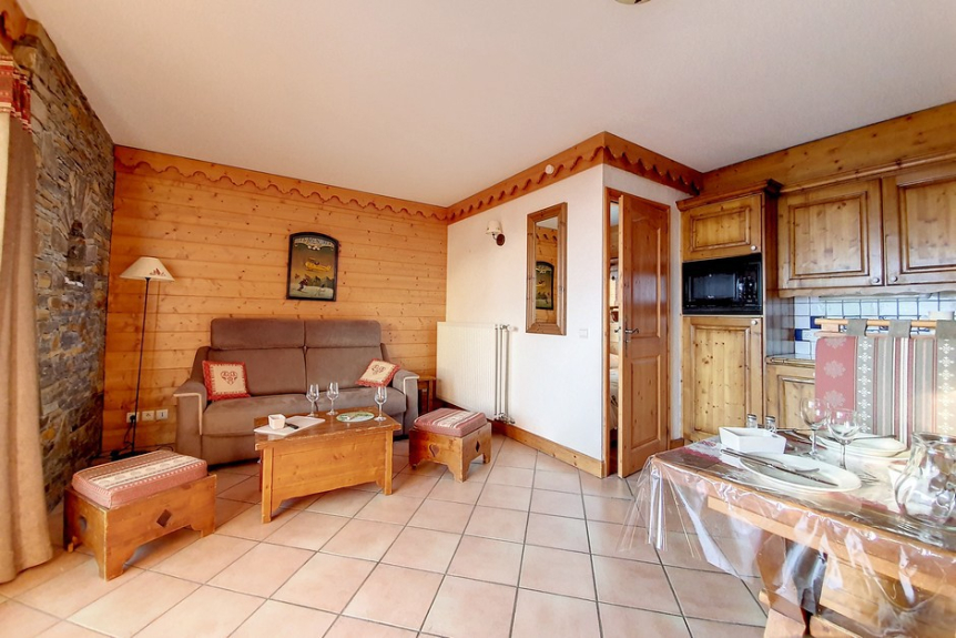 Situata a Reberty 2000, la residenza di lusso "Les Alpages de Reberty" offre appartamenti accoglienti in quattro grandi chalet in pietra e legno.