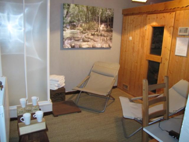 - Sala relax con sauna, doccia e sedia a sdraio, luci soffuse, bollitore con tè disponibile, per rilassarsi dopo una giornata di sci.