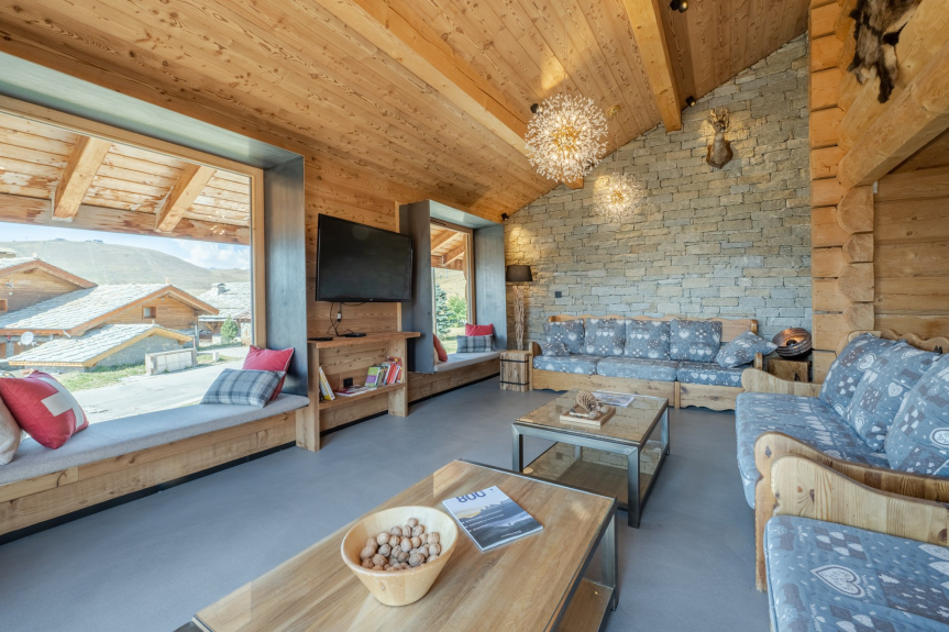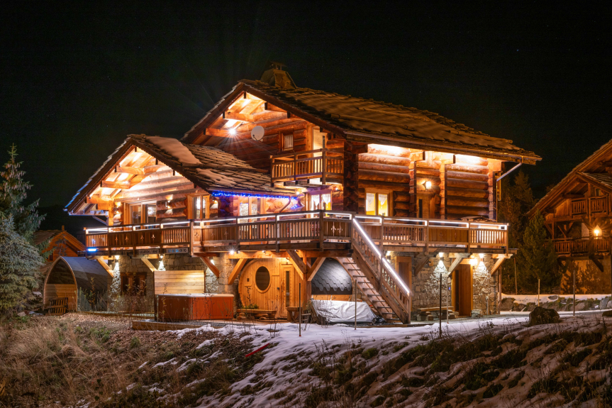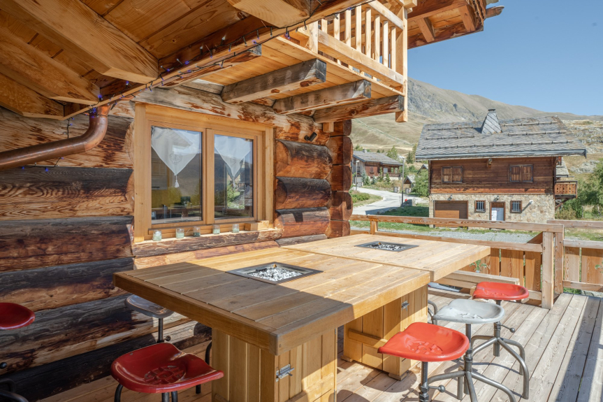 La nostra casetta di legno è situata a poca distanza dal centro della località, nel complesso "Les Chalets de l'Altiport", per cui potrete rilassarvi in un tranquillo ambiente di montagna e mettere gli sci davanti alla casetta.