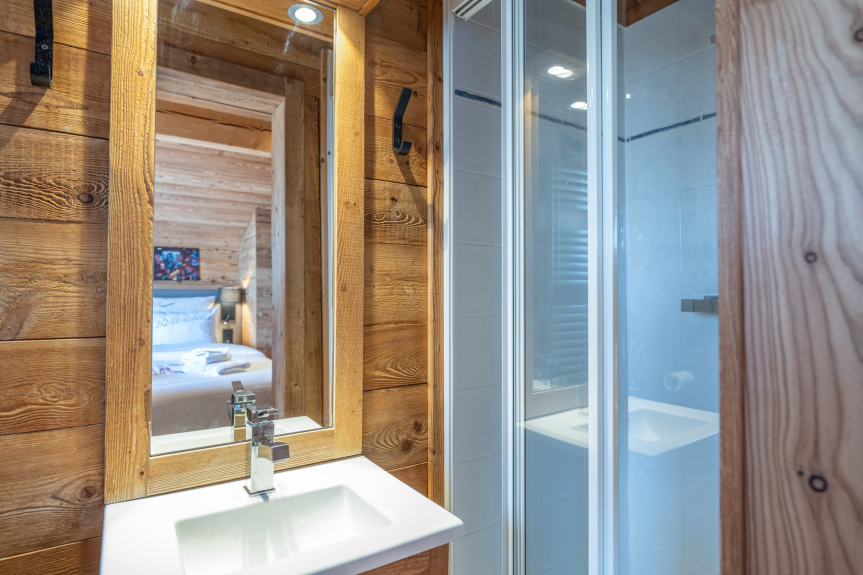 Nello chalet Tintin una delle 6 camere da letto (2 persone) può essere indipendente con angolo cottura e bagno (doccia, wc, lavabo) per accogliere baby-sitter, cuoco...
