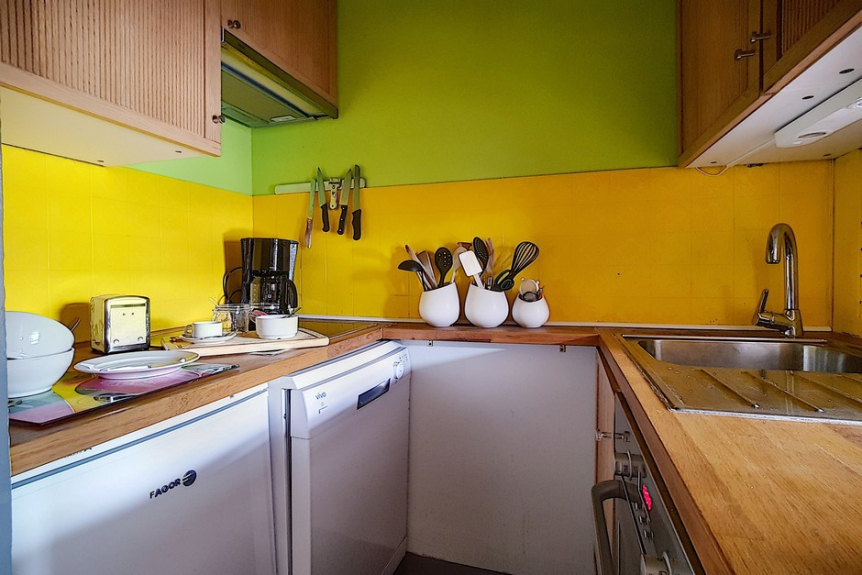 Cucina attrezzata con 4 piastre in ceramica, frigorifero, forno tradizionale, lavastoviglie, macchina da caffè, tostapane e bollitore.