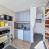 Cucina in muratura con 2 piastre, frigorifero, forno a microonde, bollitore, tostapane e macchina da caffè.