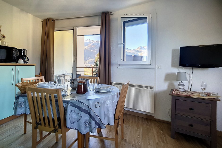 Si trova al 2 ° piano con un balcone rivolto a sud-ovest che offre una vista sulla Place des Bouquetins e un bel pomeriggio di sole. Per il vostro comfort, dotato di tapparelle elettriche.