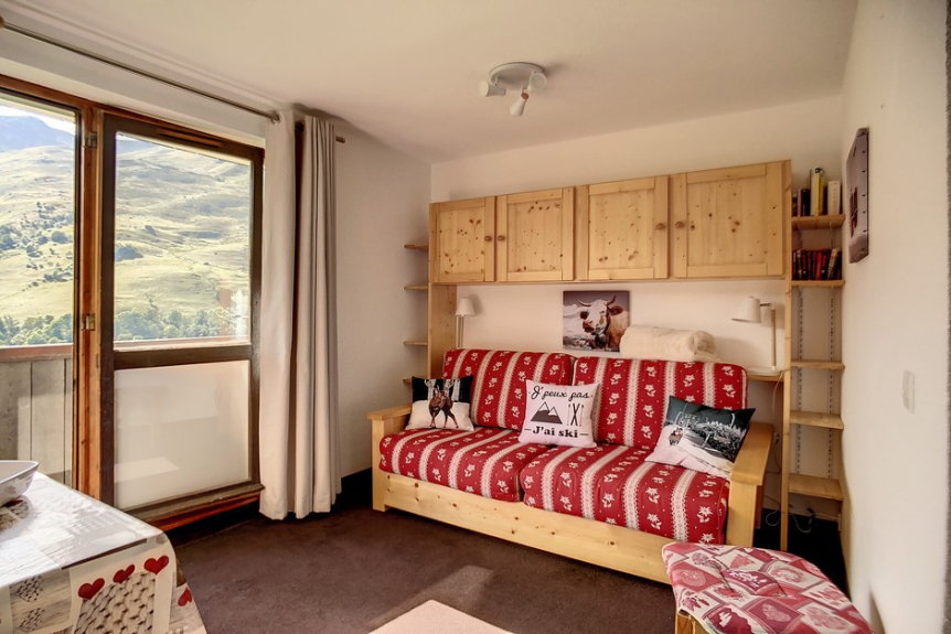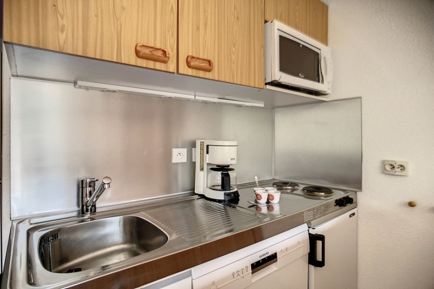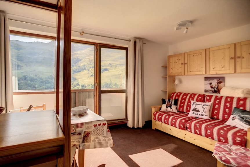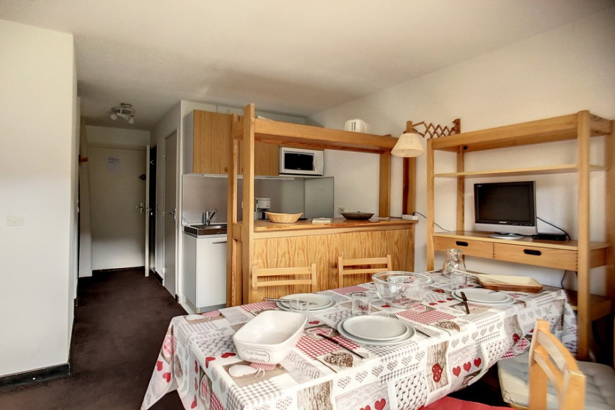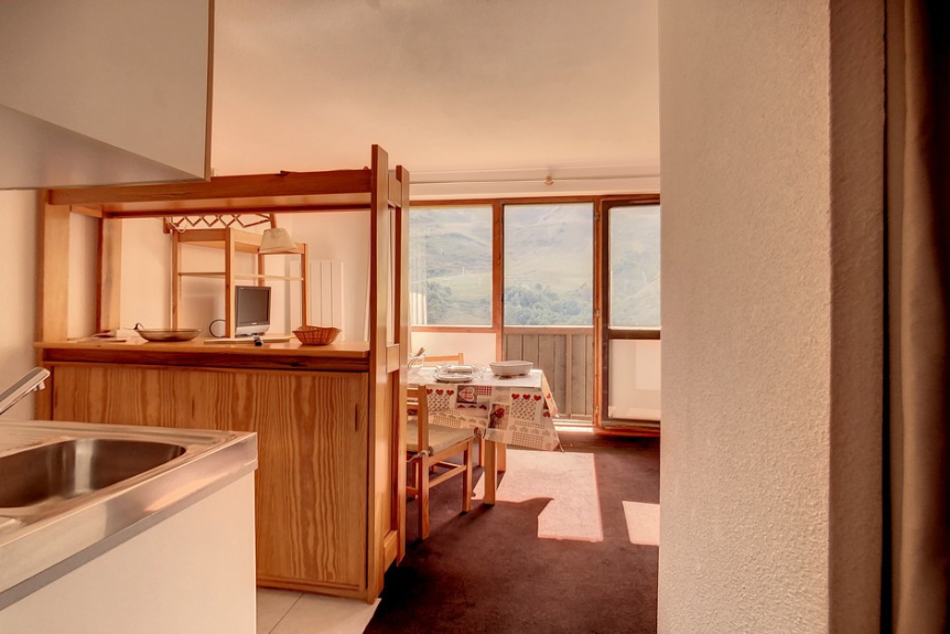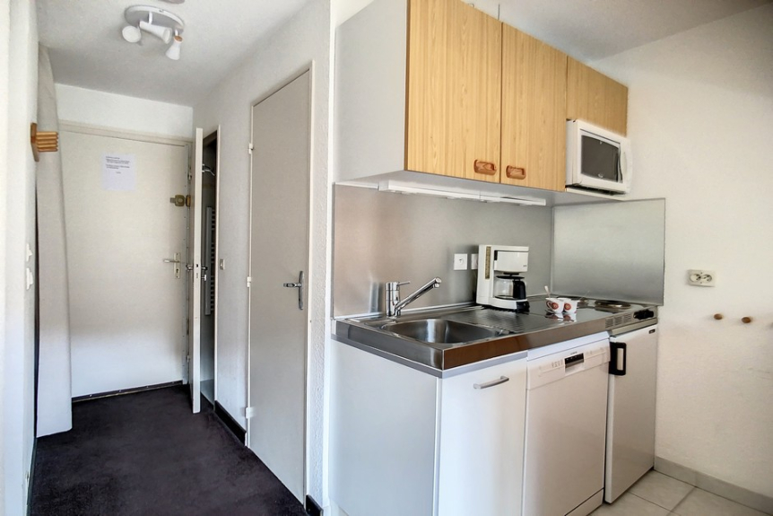 Monolocale di 24,50 m², con una zona cabina, per 4 persone. Situato al 4° piano, ha un balcone esposto a sud-est.