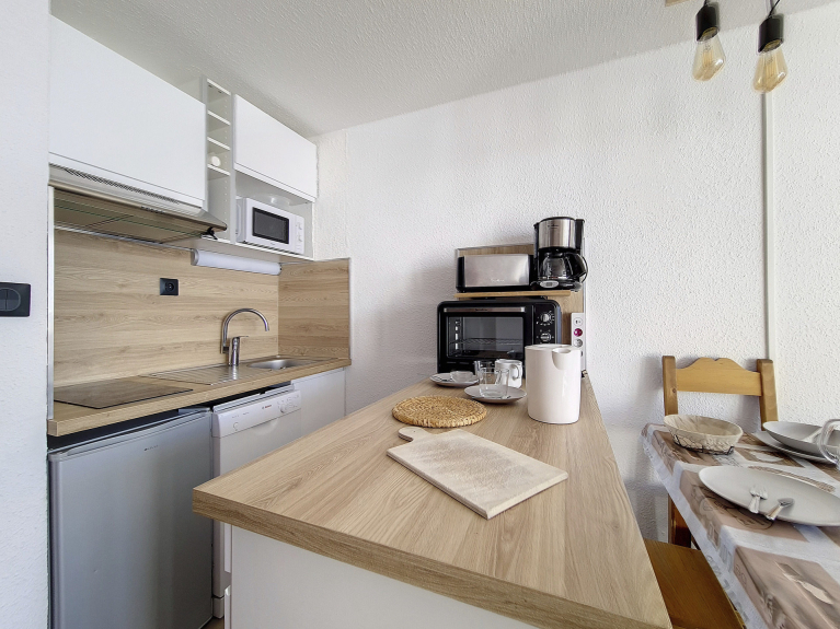 Cucina: 2 piastre, frigorifero, mini forno, microonde, lavastoviglie, macchina da caffè, tostapane e bollitore.