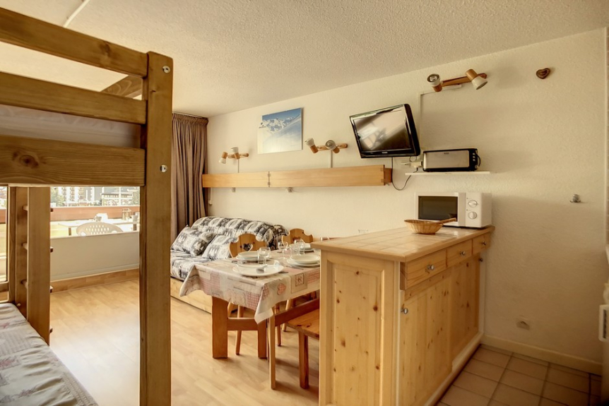 Monolocale di 24 m² per 4 persone con un balcone esposto a sud al 3° piano con ascensore.
